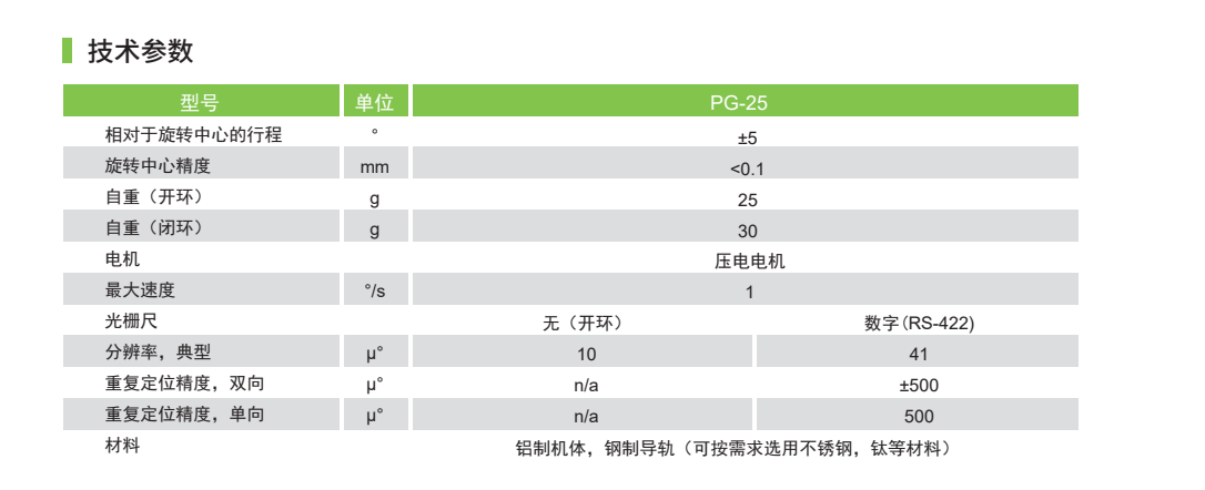 PG-25是超緊湊型電動角位移平臺。PG-25可以安裝在正交的、緊湊空間的布置中,以實現(xiàn)俯仰和滾轉(zhuǎn)調(diào)節(jié)??商峁┠軌蛟谡婵窄h(huán)境(10-6 mbar)和非磁版本。PG-25可使用MMC-100和MMC-110控制器。